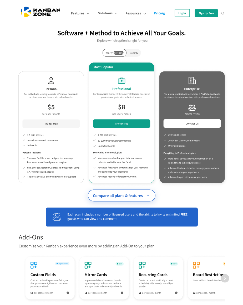 Kanban Zone Pricing Page Re-Design